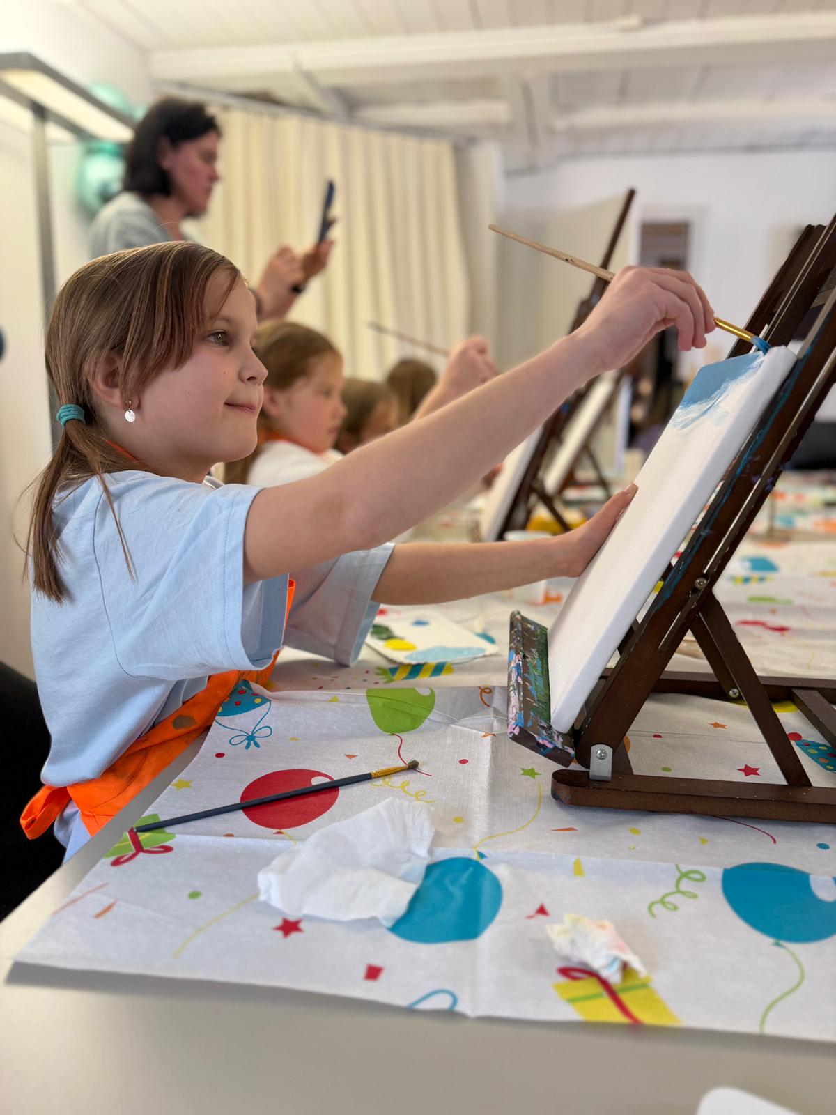In einem Raum in Bern greift eine Frau aus Brasilien zum Pinsel — neben ihr eine Frau aus der...